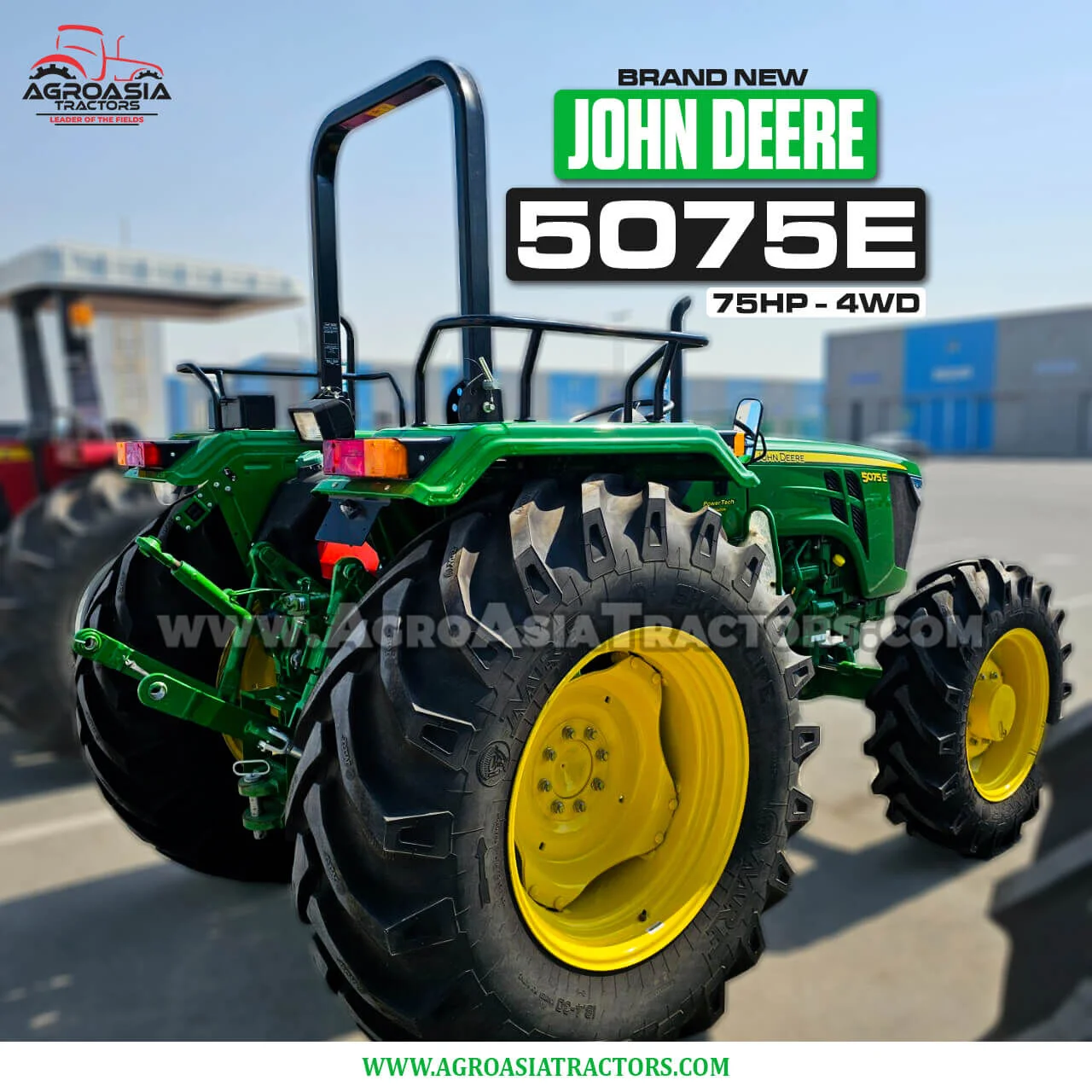 John Deere 5075E (75HP, Non-Cabin) is a powerful utility tractor designed for African farmers who need reliable performance without added cabin cost. Equipped with a 3-cylinder turbocharged engine and 4WD traction, this model is ideal for ploughing, spraying, loading, transport, and more — delivering excellent torque and fuel efficiency for all types of terrain and crop conditions.